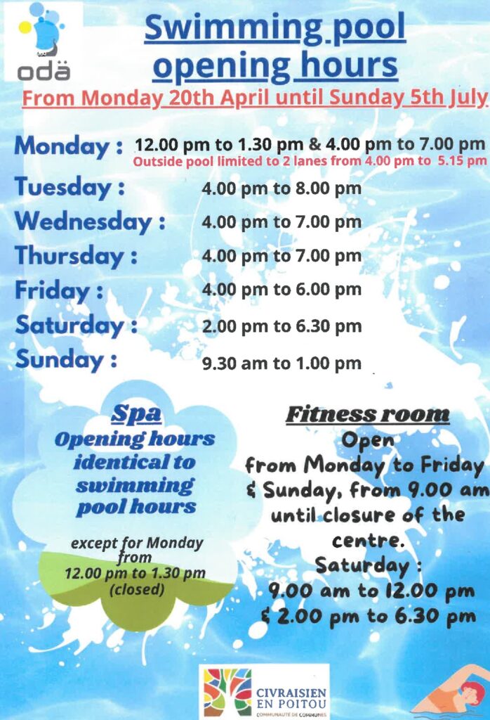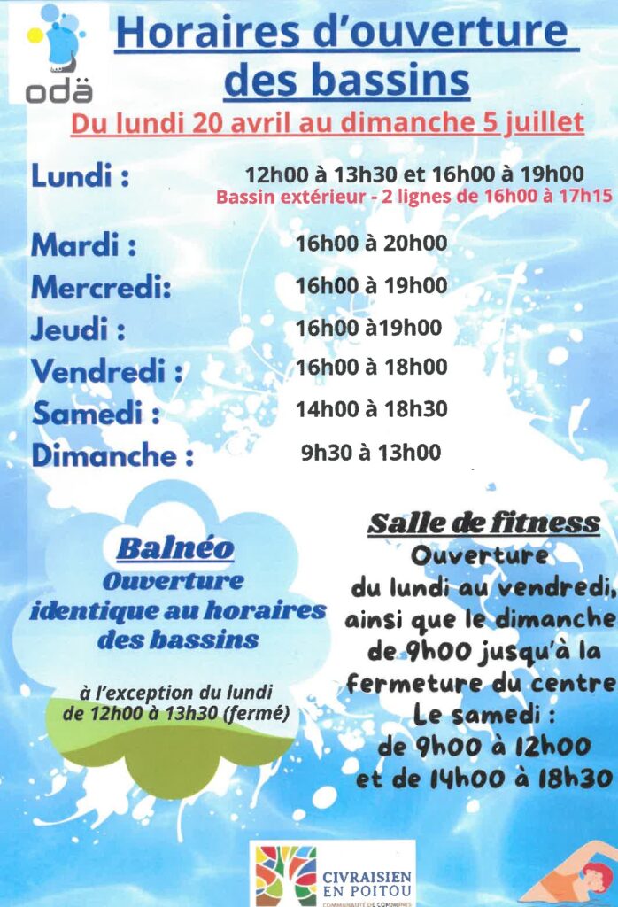 Lundi 12h à 13h30 (Balnéo fermée) et 16h à 19h